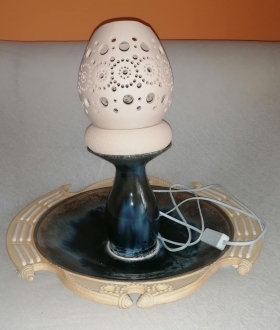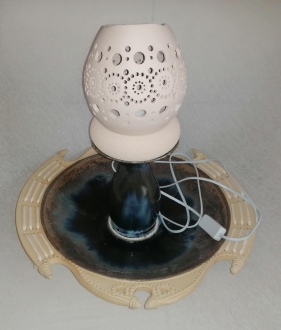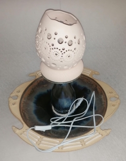 Egyedi készítésű éjjeli lámpa.Kristálymázas termék.
