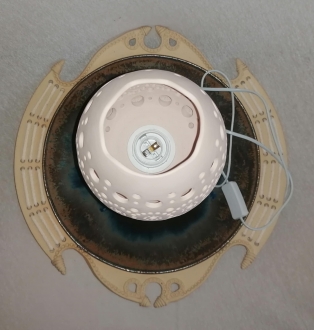 Felfelé is világít és az áttöréseken is ,és ez a minta kirajzolódik a falon.