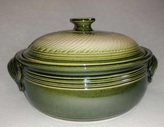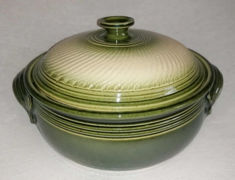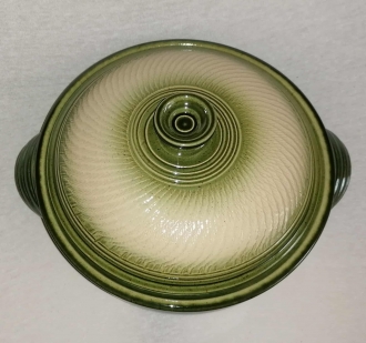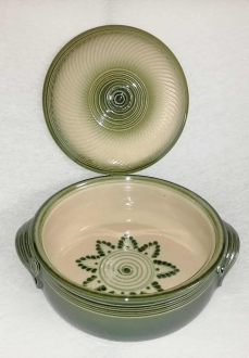A lapos fedeles sütőtálban nagyszerűen elkészíthetőek bármilyen húsok,rakott ételek,Egyedi mintája ,és színe miatt nagyon szépen mutat a teritett asztalon.Cserépedény sajátossága, hogy a benne lévő ételt nagyon sokáig melegen tartja.Ez a samottos agyagból készült edény kiválóan alkalmas a villany,gáz sütőben való használatra egyaránt.