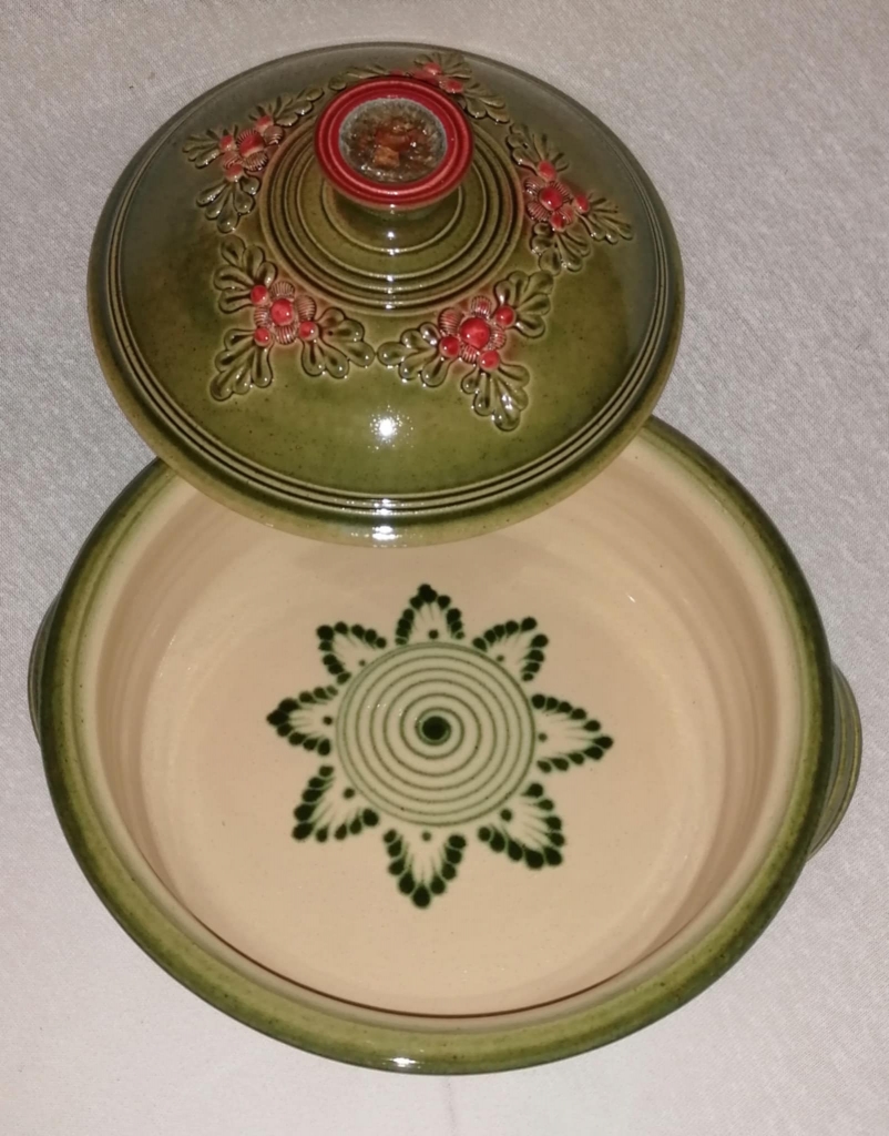 A kis lábasban nagyszerűen elkészíthetőek bármilyen húsok,rakott ételek,Egyedi mintája ,és színe miatt nagyon szépen mutat a teritett asztalon.Cserépedény sajátossága, hogy a benne lévő ételt nagyon sokáig melegen tartja.A samottos agyagból készült edény kiválóan alkalmas villany,gáz sütőben való használatra egyaránt.