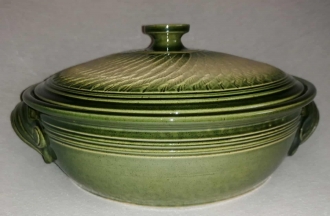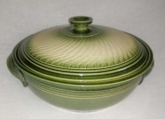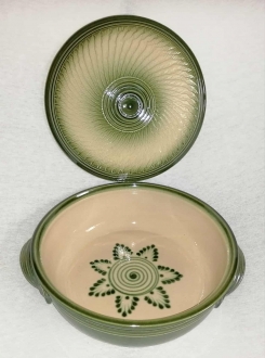 A lapos fedeles sütőtálban nagyszerűen elkészíthetőek bármilyen húsok,rakott ételek,Egyedi mintája ,és színe miatt nagyon szépen mutat a teritett asztalon.Cserépedény sajátossága, hogy a benne lévő ételt nagyon sokáig melegen tartja.Ez a samottos agyagból készült edény kiválóan alkalmas  a villany,gáz sütőben való használatra egyaránt.