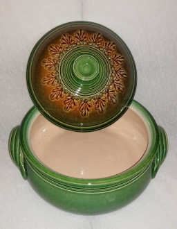 Az nagy lábasban nagyszerűen elkészíthetőek a levesek,egytál ételek,különböző sülthúsok,pörköltek,rakott ételek.(Pl: töltött káposzta,csülkösbab,egész tyúk,kacsa)Használható egyaránt villany-és gáz sütőben,valamint kemencében is.Egyedi mintája és színe miatt nagyon jól mutat a megteritett asztalon.Az edény kivül-belül mázas.Sajátossága,praktikussága,hogy nem kell a készülő ételeket kevergetni,mivel a cserép edényben nem tapad meg illetve nem ég le az étel.